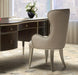 AICO Villa Cherie Desk Chair in Hazelnut N9008244-822. Post up at the home office looking fresh and elegant! The Villa Cherie Desk Chair evokes a soft hourglass shape that looks stunning at every angle. With Chardonnay trims, a channel tufted backrest and splayed legs, this chair will to redefine your productivity.