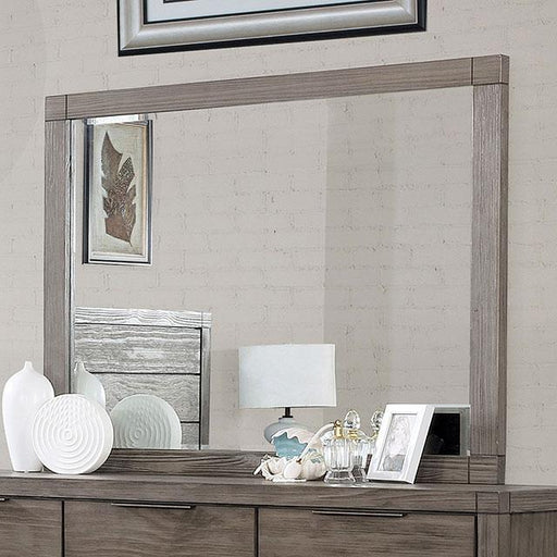 Alanis Light Gray Mirror, 49 1/2"L X 38 3/4"H X1 - 3/4"D, 64.9lbs. Avoid the contemporary aesthetic pitfall of feeling sterile and plain with this ...