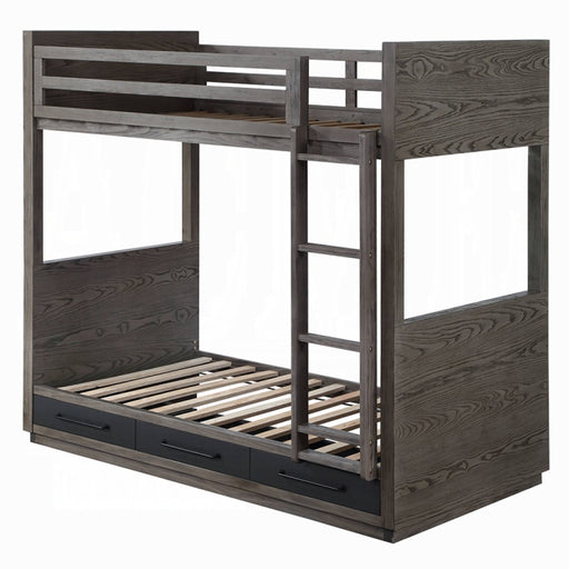 California Iv Black, Walnut, Gray, & White Twin/Twin Bunk Bed