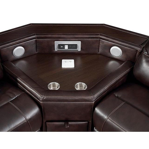 Transitional Dark Brown Fabric, Metal, Foam Glider Recliner Webbing Back Frame Construction Rounded Wide Track Pillow Top Arms Console w/ Power Ou...