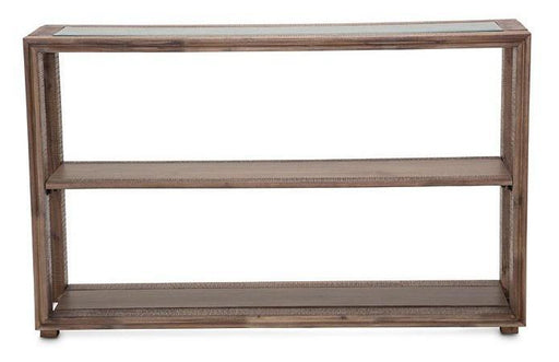 Hudson Ferry by AICO Furniture Driftwood finish Constructed with Acacia wood solids and veneer Glass diamond pattern top Console table features 2 ...