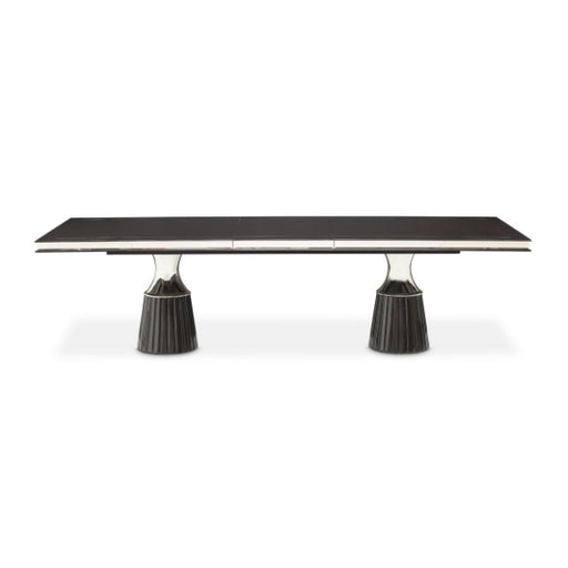 Hollywood Swank Collection by Aico Furniture Pearl Caviar Finish Large rectangular dining table Solid hardwood construction Double pedestal base S...