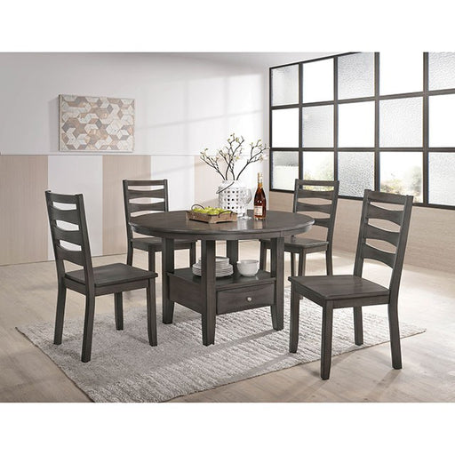 It’s so easy being gray—at least this 6-piece dining set makes it seem that way. This transitional dining table set sports a charcoal gray finish w...