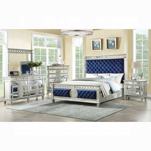 ACME Varian Dresser, Mirrored, 68" x 20" x 41*"H, 229lbs. The Varian dresser provides a commanding presence in any room. Add a dash of glam to your bedroom with this Varian dresser, this dresser features four tapered legs and 8 storage drawers with crystal-like knobs. This gorgeous dresser is accented with raised geometric patterns and mirror finish. This fashionable dresser will fuse with the surrounding Decor, transforming a room from ordinary into something interesting and sophisticated. Features: - Casegood: Mirrored Top, Front Drawers & Trim - Casegood Drawer: Glide Side Metal, Dovetail English Front & Back, Felt-Lined Top Drawer Materials: Wood, Mirror, Composite Wood