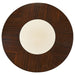 - Round scalloped contrasting base in a Porcelain finish with an Espresso bottom trim