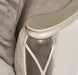 - Tapered front legs finished in Hazelnut and feature crossed rope motifs in Chardonnay
