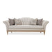 AICO Furniture St.Charles Sofa in Dove Gray 9088815-CIRUS-803. The Saint Charles Sofa is a masterpiece of craftsmanship, featuring a gracefully arched back with a distinctive tufted design that adds both visual interest and tactile comfort. The chenille fabric envelops the sofa's form, offering a luxuriously soft touch, while the contrasting welt on the body frames the piece in sophistication. The accompanying decorative pillows echo the sofa's color palette and texture, completing the look with elegance and style.