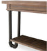 - Console top and bottom tiers are constructed using Acacia wood solids with veneers in a Reclaimed Barn finish