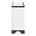 AICO Furniture Tuxedo Dresser in Piano Keyboard 9087050SA-832. Organize your wardrobe within the opulent confines of the Tuxedo Dresser. Its surface, adorned with a rich marble inlay, sits atop spacious, soft-closing drawers that reflect a lifestyle of meticulous elegance. Crafted with white anigre veneer and accented with stainless steel pulls, this dresser stands not merely as storage but as a beacon of luxury in your personal sanctuary.
