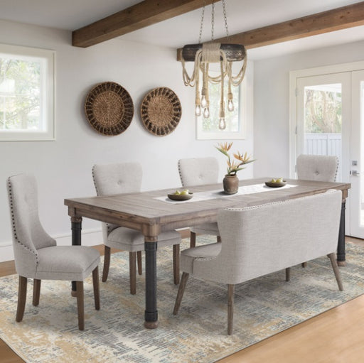 Chelmsford Collection by ACME Furniture Antique Taupe fisnih Leg Table w/ Bottom Shelf Top/Apron: Scalloped Wooden Frame with 5mm Clear Glass w/B...